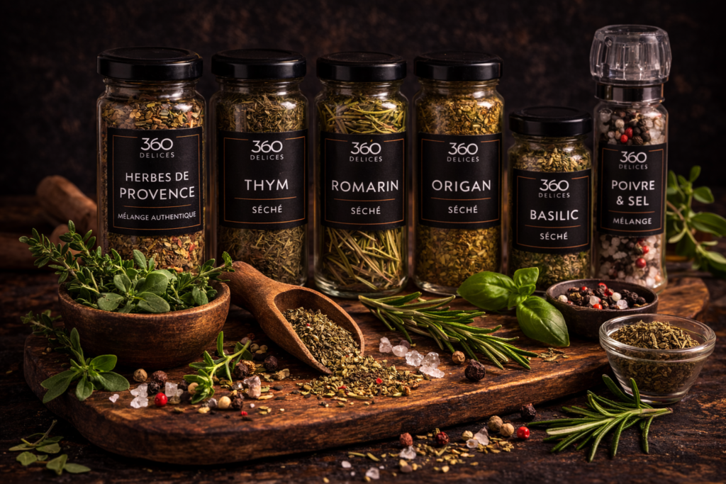 Plongez dans la richesse des saveurs naturelles avec notre sélection d’herbes et d’huiles, soigneusement choisies pour leur qualité et leur authenticité. Élaborées avec des ingrédients provenant de terroirs réputés, ces huiles et herbes vous offrent un voyage gustatif au cœur de la tradition culinaire française.